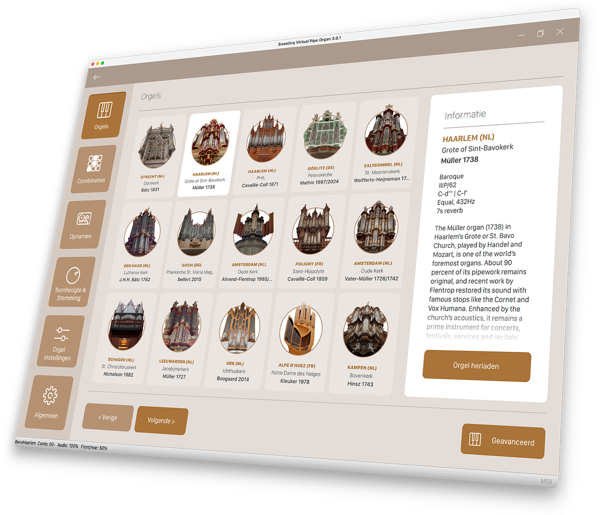 Voor een vaste prijs per maand beschik je over alle orgels in de Sweelinq bibliotheek.